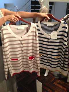 カシミアのボーダーカーディガン、