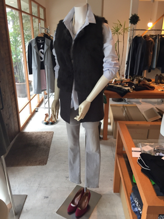 アペーナのファー付きニットジレは