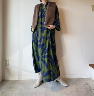 足元のブーツはアトリエブルージュ、