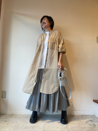 troisロングブラウスを羽織って
