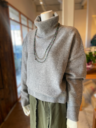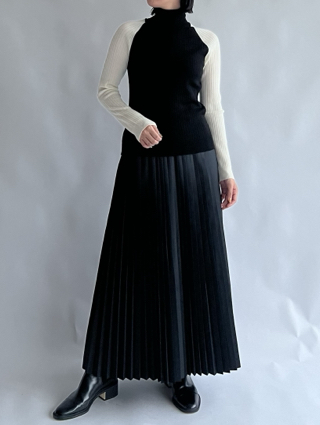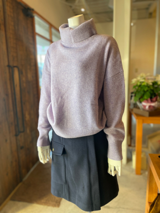 首元はゆったりしたオフタートル、