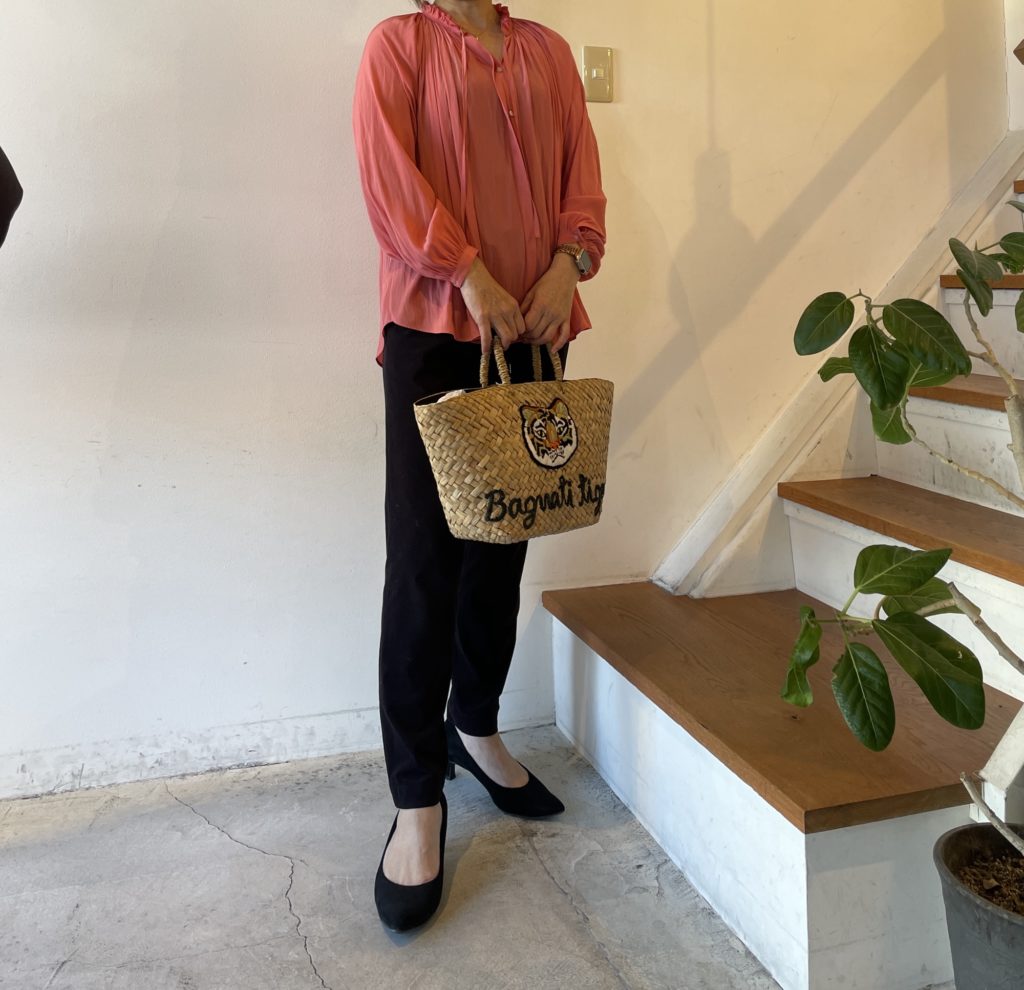 coral pinkと🐯バッグを