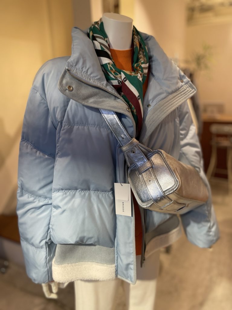 大好評ダウンコートはブルーのみ、