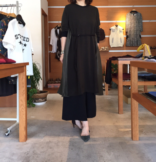 ニットとサテン地の異素材で