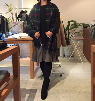 エサンスのストールを巻いて
