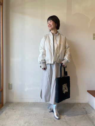 troisのジャケットブルゾンを合わせて