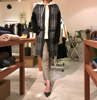 ノーカラーコートを重ね着して(^_-)