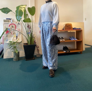 シルバーのプリーツスカートに合わせて