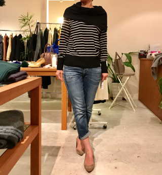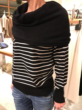 厚手の襟元とボーダーのミックスが