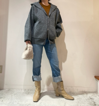 合わせたブーツはアトリエブルージュ、
