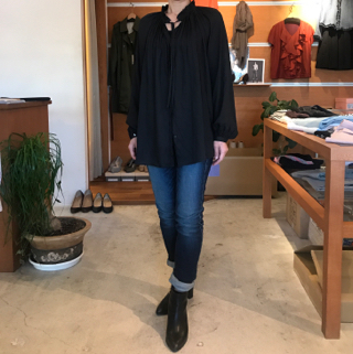 リボンブラウスはブラックを