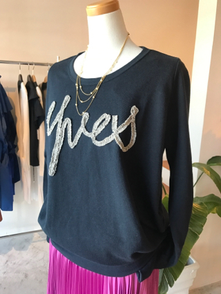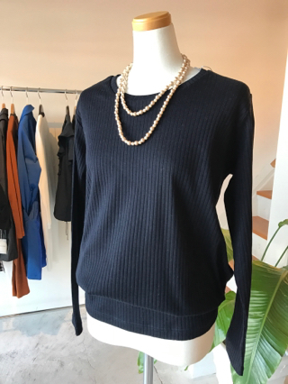 ブラックの綿ニットはリボンが可愛い!