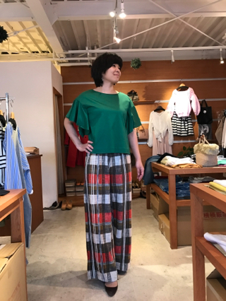 C+の新作カットソーはグリーンを合わせて(^_-)