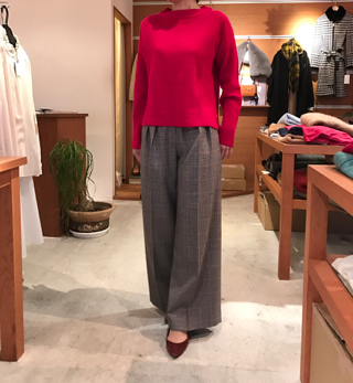 エサンスの新作ニット、レッドを合わせて!