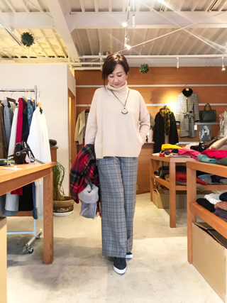 私はC+の千鳥格子柄パンツに合わせてみました!