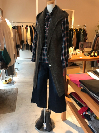 リリーリンのラクーンニットジレを合わせて。