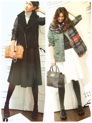 白いスカートにダークタイツも