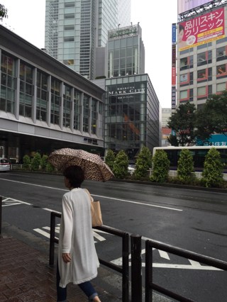 小雨降る中、急いで