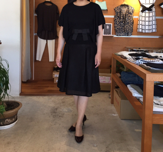 ウエストはリボンで