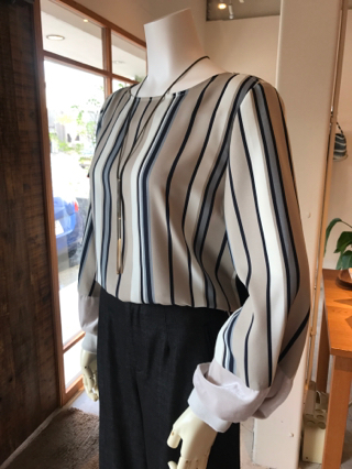 マルチストライプ袖口トップスと