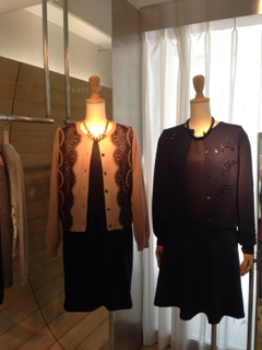 ビーズのカーディガンも
