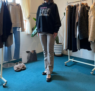 trois8.5分丈裏起毛パンツも大人気!