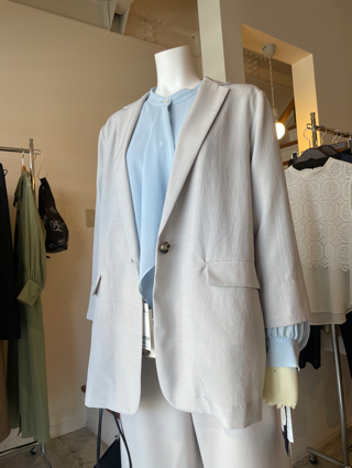 胸元は華やかにジャケットのインも