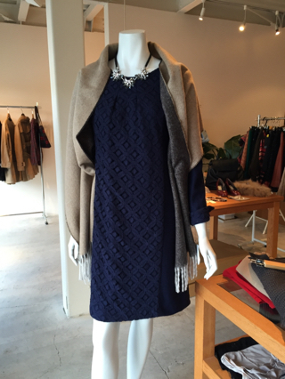 ワンピース/19,800円/Lugiva ラムウールストール/6,900円/ アトリエブルージュ 秋冬の行事にぴったりの レースの切り替えワンピース! ネイビーのレースと ふんわりな袖、 袖口は折り返すと レースが可愛いんです(^_-) ゆったりしたシルエットなのに 着る... -