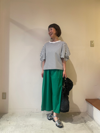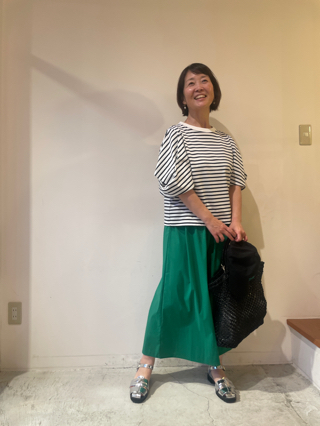 夏らしいグリーンが華やかなコーデ!