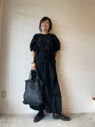 lugivaの裾ゴムブラウスを合わせて