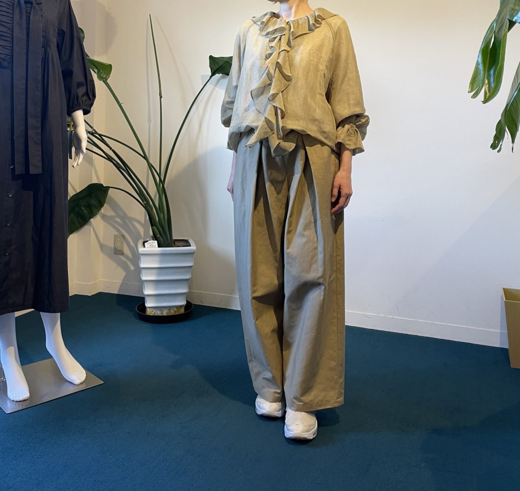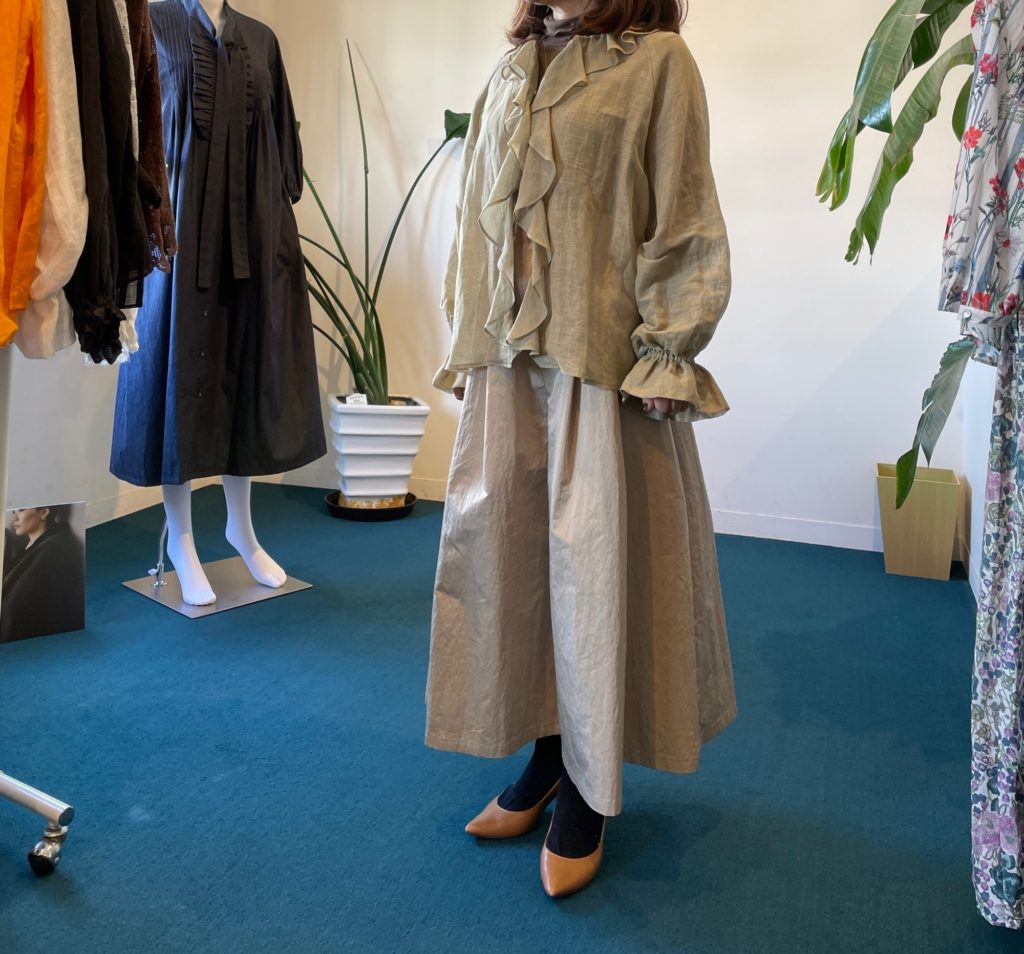 フリルブラウスはカーキで決まり!