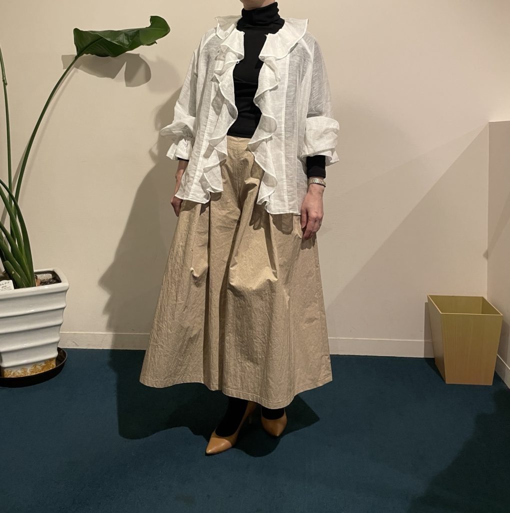 同じ素材のフリルブラウス、