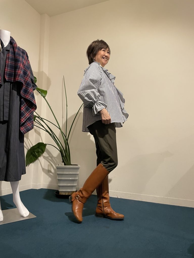 小柄なIさんもガウチョ&ブラウス!